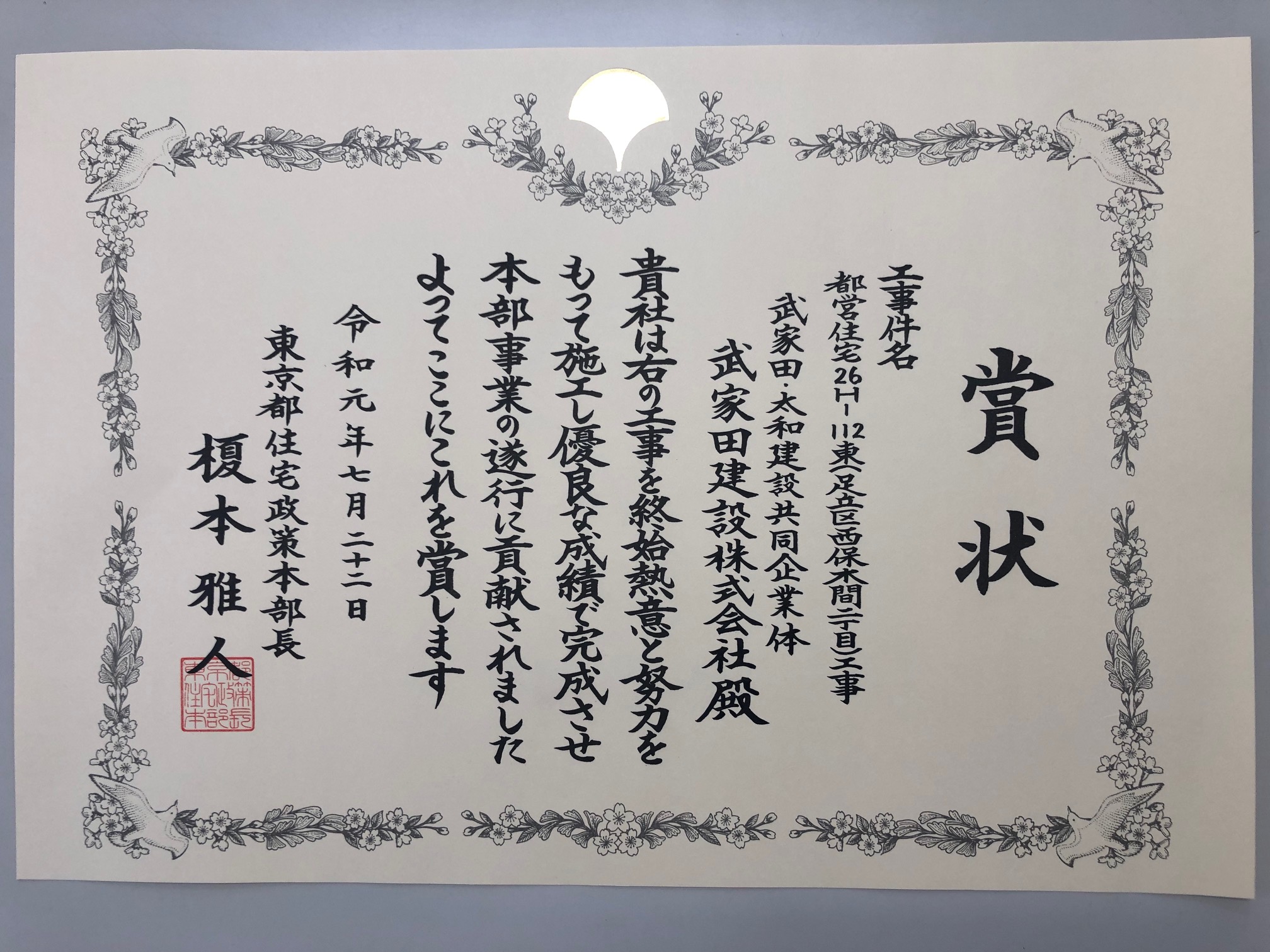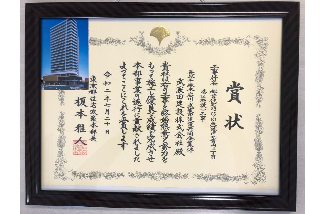 東京都住宅政策本部優良工事等本部長賞 受賞